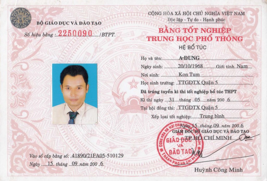 Bằng THPT – Bằng Cấp 3 Ninh Thuận gồm đầy đủ hồ sơ, bảng điểm và học bạ. Làm nhanh, giá rẻ, đặc biệt không lấy tiền đặt cọc trước.
